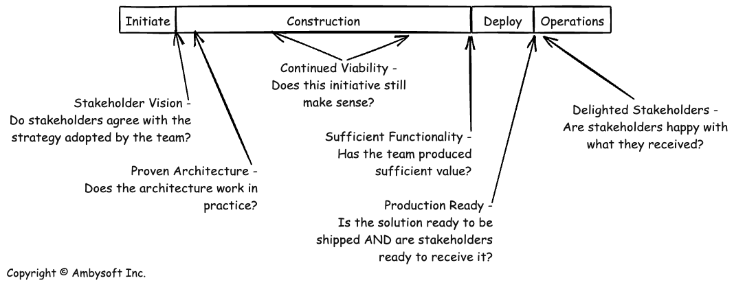 The risk-based milestones, overviewed in Figure 2 and summarized in Table 1, are proven software engineering concepts from PMI’s Disciplined Agile (DA) toolkit.